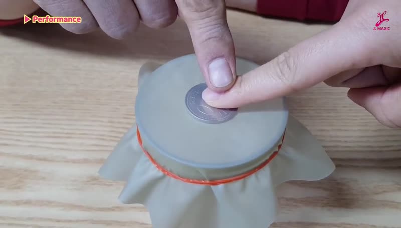 A magician will use a cup with the top covered by a rubber sheet, you can put a coin (quarter) on top of the rubber sheet and has a spectator push down on the coin, with a second the coin falls right through the rubber sheet inside the cup. Immediately, you can hand everything out for examination.