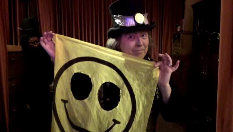 You take a large 24 inch silk handkerchief. Tie a very fair and sturdy knot in the center. Tug on the knot to make sure it’s secure… Then, you make a magical gesture, and the knot mysteriously slides right off the end of the silk! This can be repeated with a hilarious “kicker” finale.