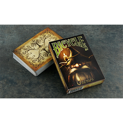 Attested from the early 18th century. Gnomes are used in Alexander Pope’s “The Rape of the Lock”. The creatures from this mock-epic are small, celestial creatures which were prudish women in their past-lives, and now spend all of eternity looking out for prudish women (in parallel to the guardian angels in Catholic belief). Other uses of the term gnome remain obscure until the early 19th century, when it is taken up by authors of Romanticist collections of fairy tales and becomes mostly synonymous with the older word goblin. 100% custom designed Bicycle playing card deck.