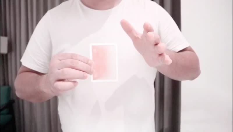 An empty card frame is shown and with the wave of your hand a full and complete playing card appears right in front of their eyes!