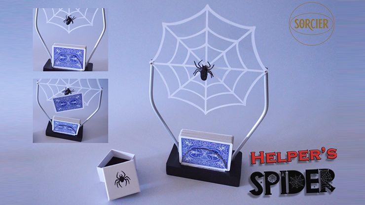 For the first time on the market, a Sorcier Magic exclusive. This is a new magic trick suitable for a small audience, ideal for smaller performances. Show an aluminum and plexiglass stand. The audience will immediately notice a large empty spider web, and at the base two transparent semicircles that act as card holders. Also show a rigid glossy paper box, stating that your helper is inside. Take a deck of cards from your pocket and ask them to choose any card. The card can also be signed.