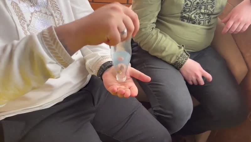 A thick, massive, metal ring, which the viewer checked, goes into the bottle several times. And not through the hole in the neck of the bottle. Because the ring is larger.