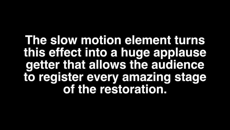 This is the smoothest version of the classic torn and restored newspaper you have ever seen! Nick’s handling of Alex Elmsley’s brilliant effect is the routine he has closed his show on for thirty years. Why do the routine in slow motion? Nick routinely receives standing ovations due to this unique handling. The slow-motion element turns a good trick into a huge applause getter that allows the audience to register every amazing stage of the restoration.