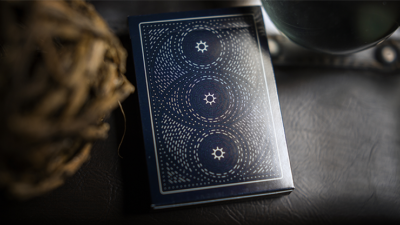 The midnight black backs of Paradox Playing Cards contrast with the mystical, blue-dotted swirling circles, suggesting chaos — yet every line is meticulously placed in defined order.