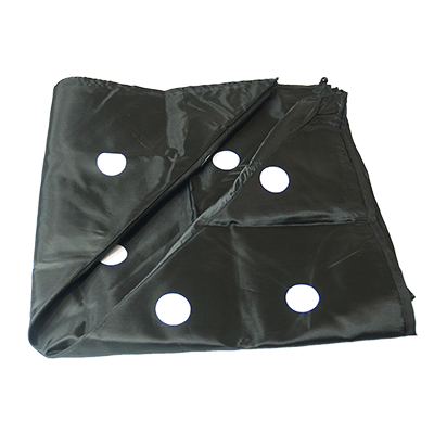 The magician presents both sides of a big black silk with white polka-dots. He shakes the silk and the polka-dots fly away. The silk turns entirely black on both sides! Then the magician tosses some polka-dot’s into the silk. Magically, the white polka-dots return to the silk, on both sides!