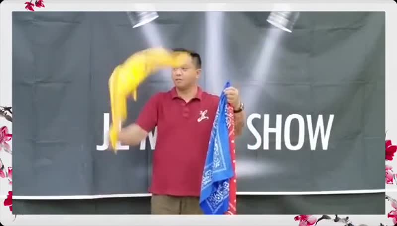 Umbrella From Bandana Set by JL Magic. Magician shows a large handkerchiefs, with a second the handkerchiefs instantly transform into a colorful big umbrellas. What a nice tricks!