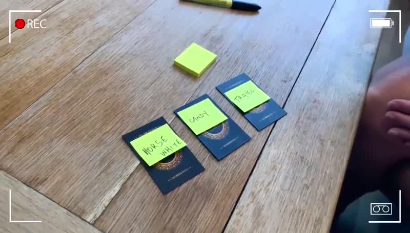 Now invite the spectator to take his phone and snap the first plate, the plate with the “TRAVEL” post-it!